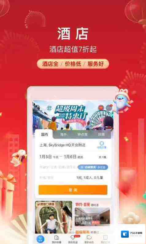 4、全国酒店天天有半价,经济连锁酒店6折起,五星酒店11元起秒杀。