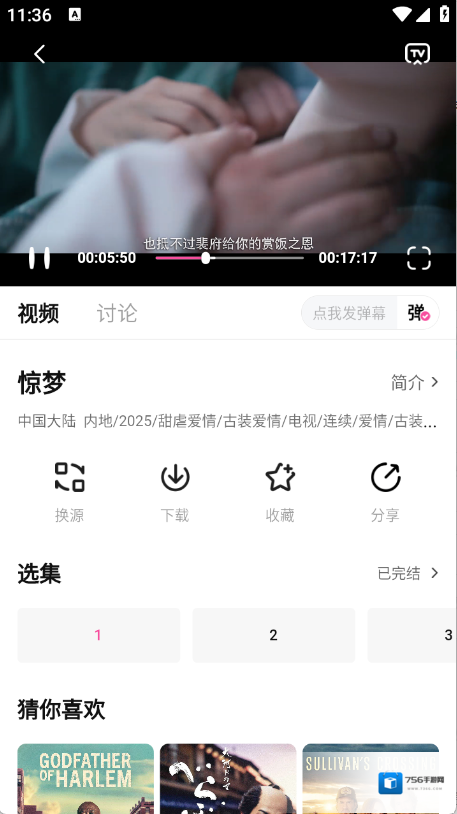 1、点开想要投屏的影视,点击右上角的“TV”。