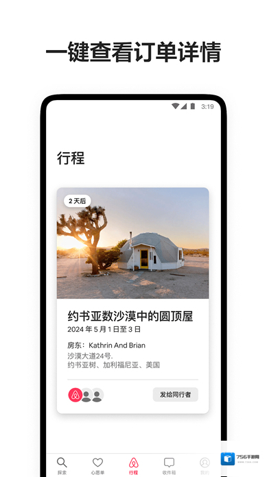3.取消预订申请的操作步骤为:打开爱彼迎APP,点击右下角的我的-行程,选择你的旅程,轻点您的房源预订;
