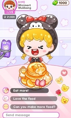 你将在游戏中帮助一个女孩完成吃播,通过安排不同的美食来进行直播,收获更多的粉丝数量来增加自己的人气,解锁更多的美食来吸引更多的观众,不断提升自己的人气来成为最厉害的主播。