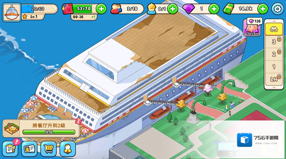 6、不断获胜更多的金币来修复游轮的其他区域,吸引更多的顾客来打造最棒的豪华游轮。