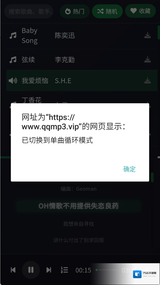 4、点击歌曲后面的收藏按钮可以收藏音乐。
