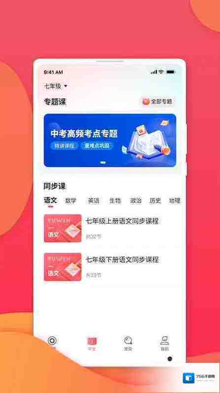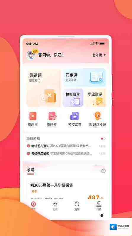 七天学堂查成绩app,一站式学习平台,覆盖小初高中不同学段不同学科的知识,教师在线授课和解答疑问,提供详细的知识点,让学生除了书本知识的学习以外,还可以在课外学习更多的知识,根据重难点可以有针对性的做练习题,并且支持查询各科分数,软件提供海量题目资源,让用户可以随时随地进行练习和复习。