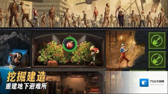 建造不同的掩体设施并根据自己的喜好自由调整布局!升级建筑,提高发展效率来拥有更多的幸存者,让他们成为你发展的动力!但别忘了种植足够的食物来喂养它们!