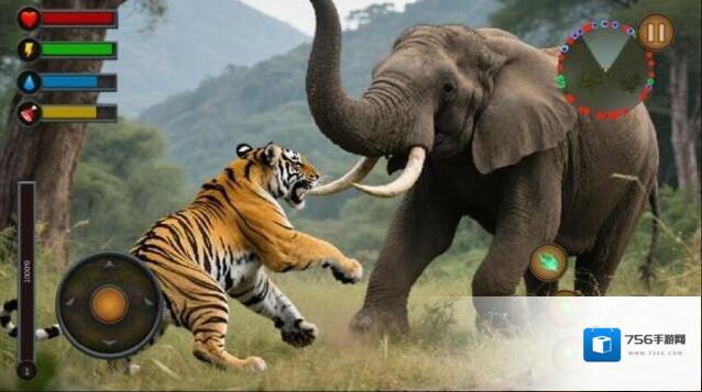 1、真实模拟野生动物生存法则,体验丛林弱肉强食的生存挑战。通过观察学习老虎的捕猎习性,掌握潜伏突袭等专业技巧,感受食物链顶端的生存压力。