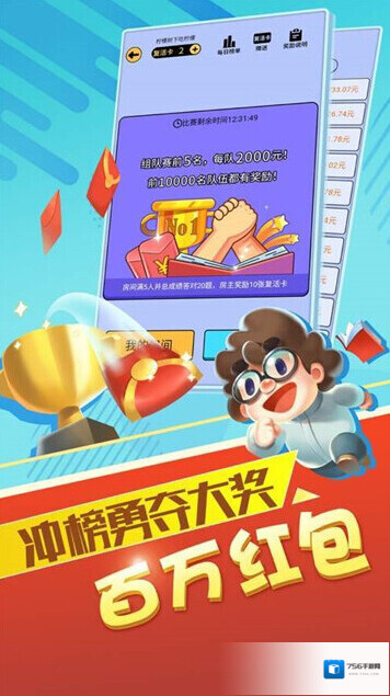2、组队比拼瓜分奖励:邀请好友组队参与答题比拼,与其他队伍展开知识较量,通过团队协作回答问题,获胜队伍可瓜分丰厚红包奖励,增进好友互动的同时享受组队答题的乐趣。