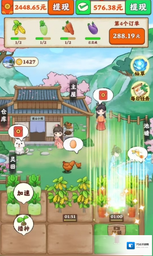 一款古风题材的模拟经营游戏,以种植各种农作物为主要玩法,通过订单的方式来决定种植何种作物,每次完成订单都可以获得非常不错的奖励哦!并且随着你的不断经营,后续还可以解锁更多内容丰富的玩法,例如由你一人承包的鱼塘!