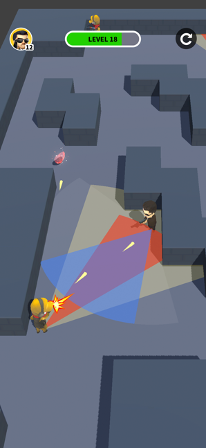 3、探查半径机制:敌人与玩家均有探查半径,只有进入范围内才能发起攻击,且攻击会吸引其他敌人,增加了潜伏与策略的重要性。