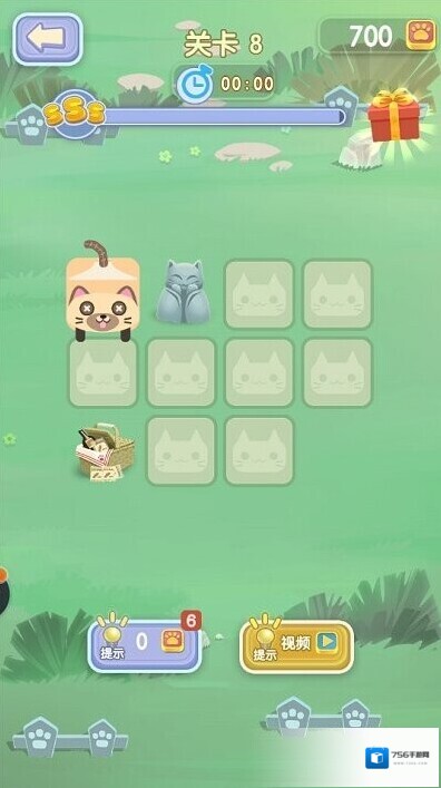 3、萌系画面风格:采用卡通画风打造可爱的猫猫角色与清新的方格场景,搭配柔和的色彩与流畅的动画效果,营造治愈的游戏氛围。