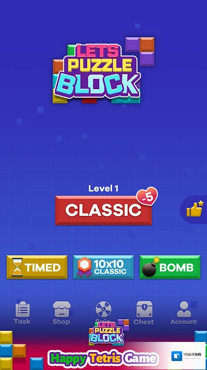 1、点击CLASSIC模式按钮开始游戏,消耗5点体力进行方块消除挑战。