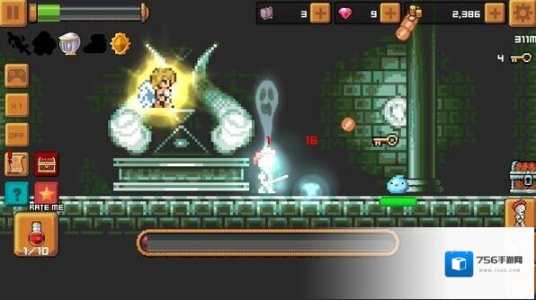 1、复古像素视觉:采用经典像素画风,细腻刻画角色与场景,骑士挥舞武器时的流畅动作、怪物受击后的夸张反应,以及城堡中光影变幻的细节。