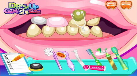 2、从工具台选牙刷、牙膏、牙科钻等工具,为芭比清洁、修复牙齿。