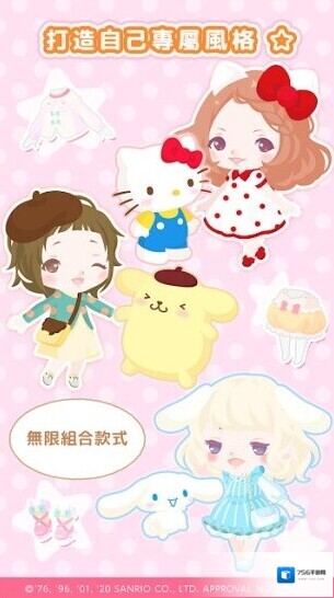 3、精美服装搭配:拥有多种风格的精美服装,包括不同三丽鸥角色主题的可爱设计,玩家可自由搭配,打造个性造型,在梦幻世界中展现时尚品味。