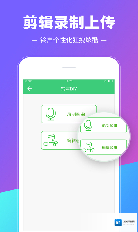 3、同时还附加剪辑、录制功能,可以自己制作自己的特定铃声。