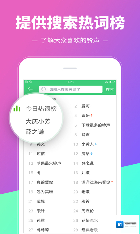 1、火热铃声实时更新,把握时尚风向标,网罗分享量超高的铃声,汇总个性又流行的彩铃。提供人气热榜参考,让你不再选择困难。