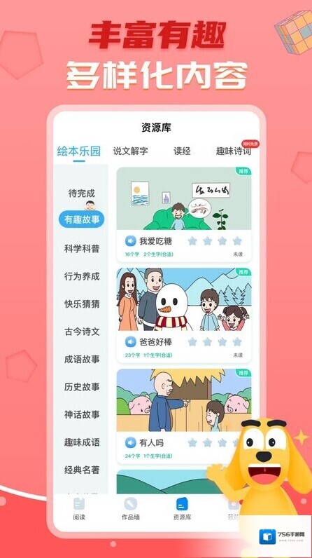 根据识字量推荐故事,4岁小朋友就能自主阅读