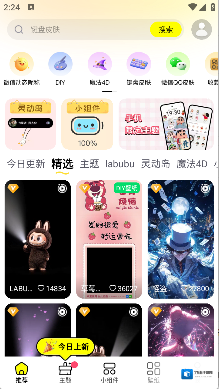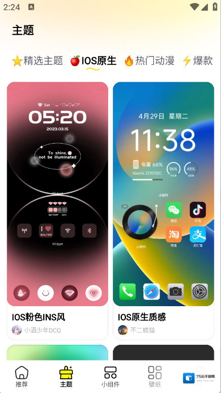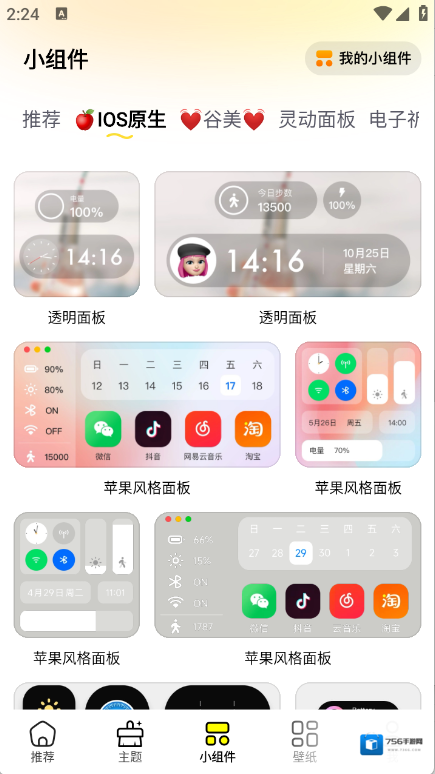 2、进入首页之后底部栏中汇集了很多的资源,包括小组件、壁纸以及主题。