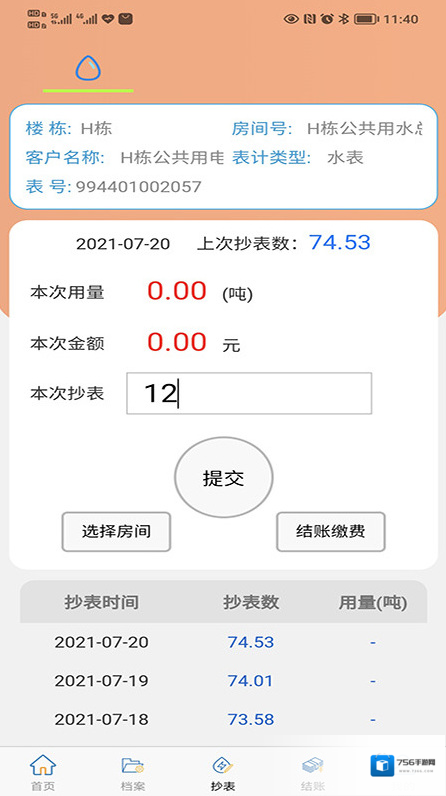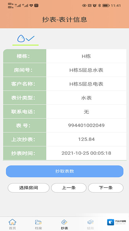 3、拥有详细的抄表信息,包括地址、楼栋、房间号、表编号、上次度数、抄表时间等。