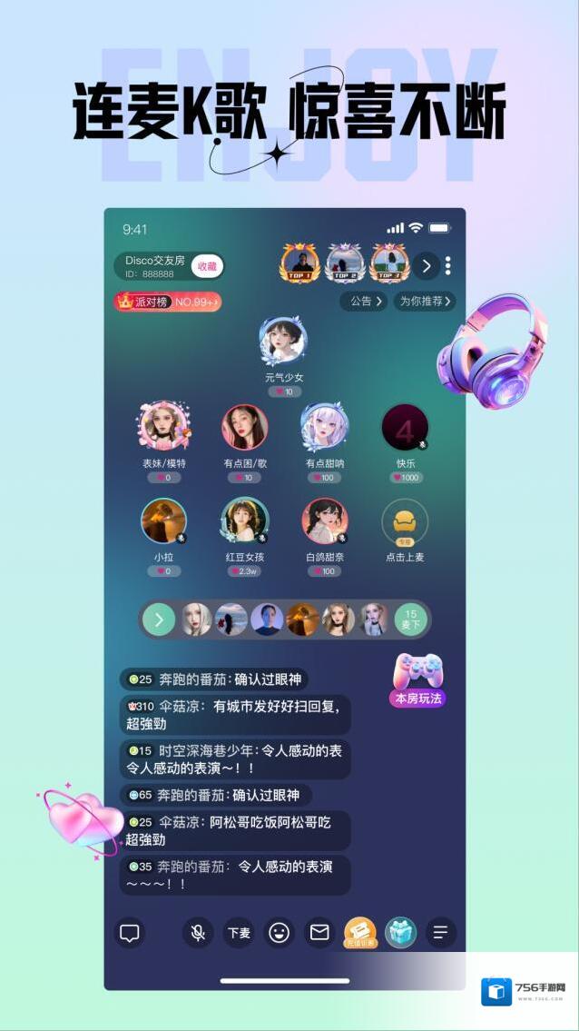 3、房间互动随心所欲,所有交友方式简洁明快,仅凭声音便可充分展现自我。
