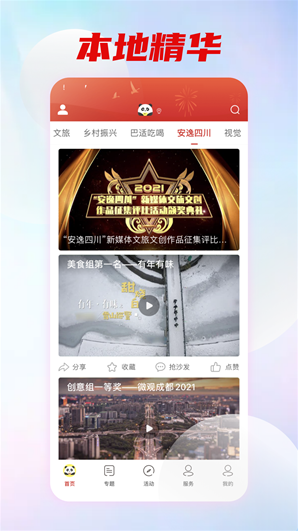 熊猫视频是四川电视台推出的官方手机端视频应用,专门为用户提供大熊猫生态保护区的实时动态。这款应用不仅整合了海量影视资源,还能让用户快速获取各类新鲜资讯。平台采用纯净无广告的播放模式,支持用户自主上传原创视频内容,轻松实现快乐分享。界面设计简洁明了,操作流畅顺手,无论是追剧还是看直播都能获得舒适体验。想要尝试的朋友可以到谷普下载安装包。