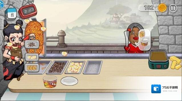 2、面对排队顾客,观察其订单要求,从食材区选取对应配料快速完成制作交付。