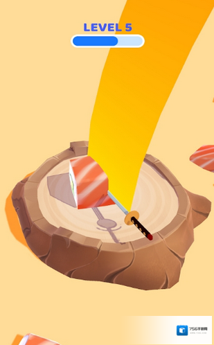 3、完成关卡指定劈砍次数或精准度要求可通关,根据评分解锁石斧、电锯等进阶工具,挑战带障碍物的高难度木材。
