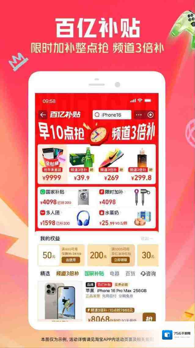 淘宝百亿补贴 限时加补整点抢 频道3倍补
