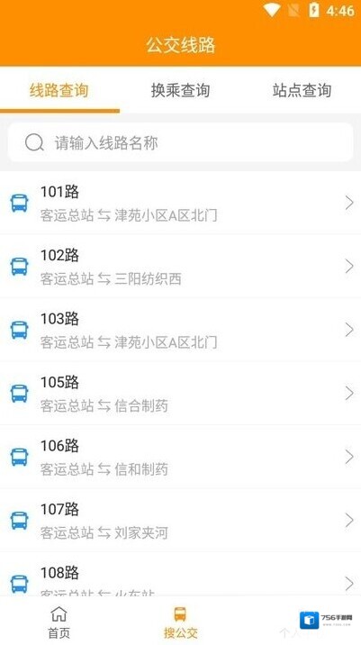 ·搜公交页面,选择查询,输入线路,可以显示出此线路途径所有站点;