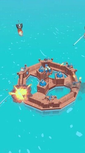 3、立体战斗系统:近战使用鱼叉击退登筏敌人,远程操控火炮轰击敌方木筏薄弱处;潜水时可安放炸弹摧毁海底障碍物,配合“烟雾弹掩护+登岛突袭”的组合战术。