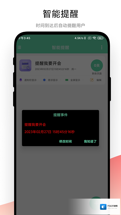1.软件会自动计算提醒时间,以倒计时显示 ,时间到达后,自动弹窗和震动提醒用户注意。