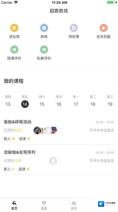 4.功能服务也非常的贴心,教练在app内进行课程安排,线上及时沟通,排课时间等等.