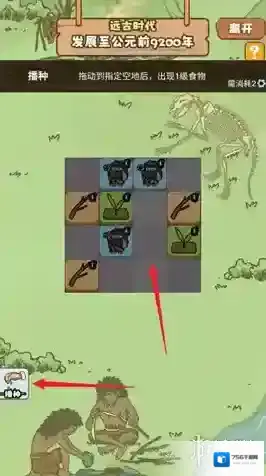 5、在远古时代,玩家自带播种技能。长按技能图标并拖动到空地格即可使用该技能。