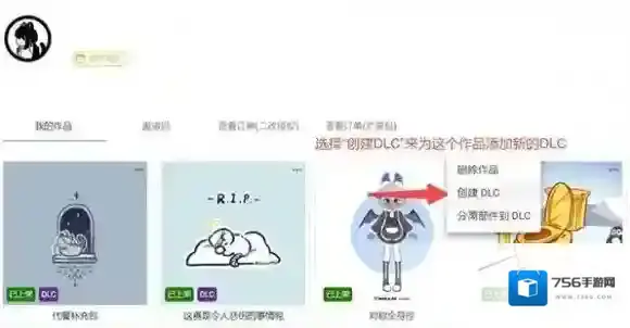 1、在捏咔工坊中,选择想要为其创建DLC的作品,然后点击作品右上角展开的菜单。