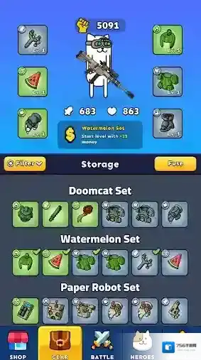 除了添加部件外,还可以将相同物品进行合成来升级属性,提升你的火力!不止如此,通过不断的战斗可以去收集更多的金币,为你解锁丰富多样的天赋,让猫咪整体实力逐步变强,迎接更多的困难挑战!