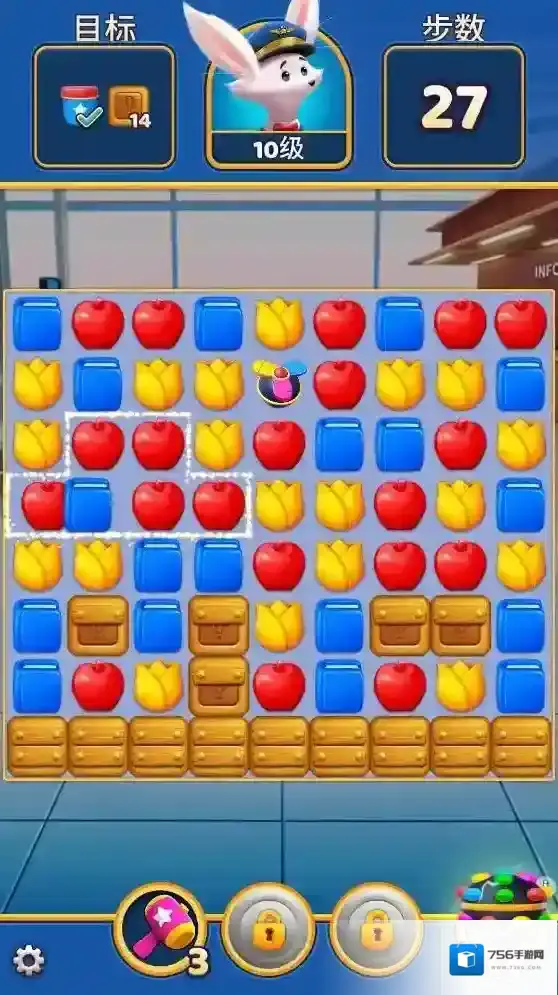 3、将三个相同的物品放在一起就可以消除,在有限的步骤内消除所有目标就可以通关。