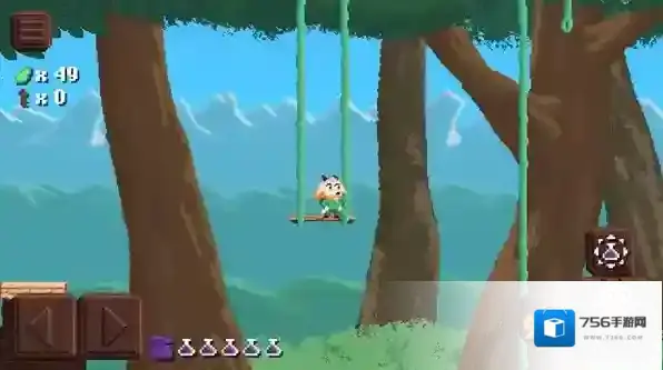 4、在前进过程中会遇到一些在空中的点,跳起来使用绳索就可以在这些地方荡来荡去跨越障碍。