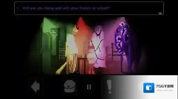 2、正式开始后屏幕下方的左右箭头可以控制角色移动,感叹号是进行互动和推进剧情。