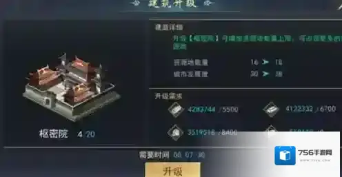 2、第二则是升级主城府,主城府的升级可以开放更多城市建筑,增加资源地数目上限,这可以保证玩家攻占资源地时不会受限。