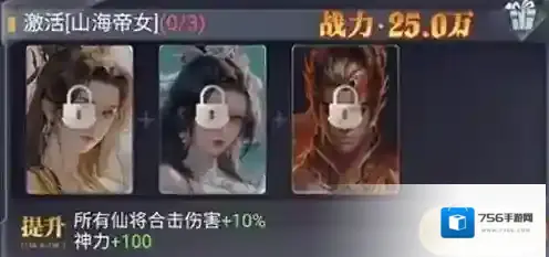 战力:250000、提升:所有仙将合击伤害+10%,神力+100。