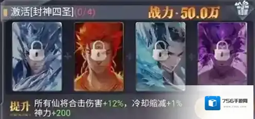 战力:500000、提升:所有仙将合击伤害+12%,冷却缩减+1%,神力+200。