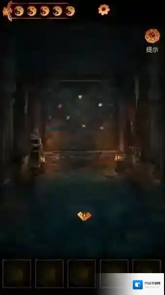 1、进入右边的墓室,书柜上获得一只石狮子,把石狮子放在主通道的空缺处,根据墙上的石狮子改变四个狮子朝向,一个密码箱降下来。