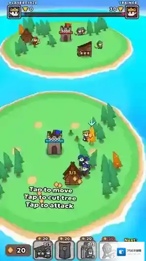 游戏中玩家需要放置不同的建筑来召唤小兵进行战斗,通过砍树收集资源来召唤不同的兵种,合理搭配你的兵种来完成不同的挑战,解决各种各样的敌人来获得不同的奖励,运用不同的计谋在战斗中获胜,不断获胜来成为最厉害的国王。
