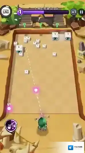 2、进入关卡后滑动屏幕来控制小球的发射角度,角色会自动发射小球进行攻击。