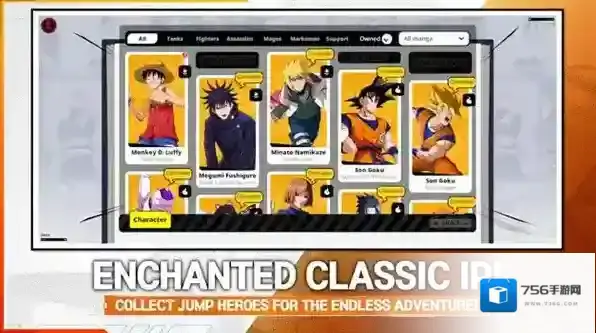 3、漫画群星大集结包含《周刊少年Jump》旗下众多经典漫画角色,包括《七龙珠》《航海王》《火影忍者》《BLEACH》《鬼灭之刃》《咒术回战》等。