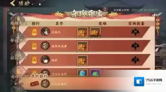 6月11日0点将依据玩家宝物收藏数量进行全服排名,优胜者可获得橙色英雄自选箱、补天石等超值奖励。
