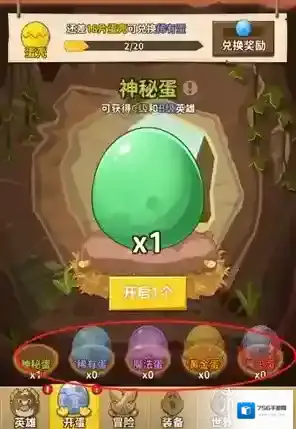 1、游戏里一个最直接的获取英雄的方法就是开蛋,蛋的品质有神秘、稀有、魔法、黄金、神王这几个品质。
