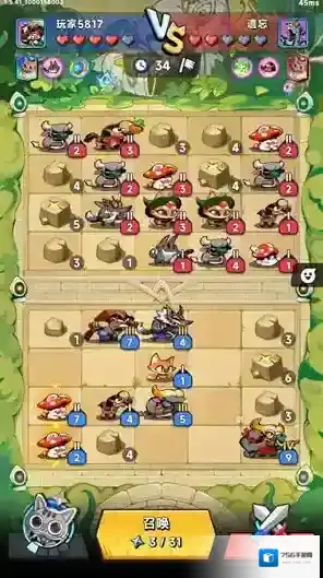 2、进入战斗后点击召唤按钮可以召唤英雄,相同等级的可以合并来提升等级。