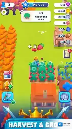皇家领地(Royal Lands),一款中世纪风格的王国建设类模拟经营游戏。完美的融合了放置经营和策略冒险玩法,带给玩家们更加丰富有趣的游戏体验!一开始你只是一个势单力薄的光杆司令,只有利用手中这把斧头来砍出一片天,收集物资、战胜怪物以获取足够的资源,然后建造王国并吸纳更多的人民,一步步的将自己的王国变得更加强盛!同时,还需要建造足够强大的防御,防止周围入侵的其他王国,守卫自己的领地!