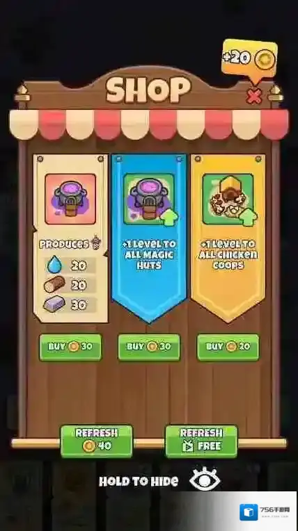 5、当玩家击败一波敌人后可以进入商店,在商店里你可以购买不同的建筑和强化效果。