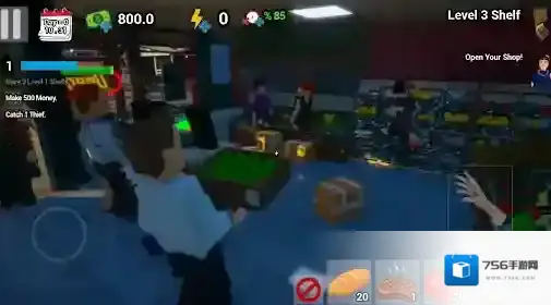 2、不断的解锁升级更多内容,并拓展你的超市规模,增加更多货架和商品种类,让顾客有更多选择。